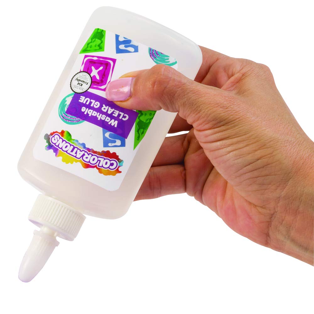 - Washable and non-toxic. Ideal with Colorations® Liquid Watercolor for transparent colored glue that dries glossy and flexible. Works with most porous and semi-porous materials. Contains non-toxic polyvinyl alcohol, no coloring additives or acetic odor.Colorations® Washable Clear Glue does not contain the following common allergens: